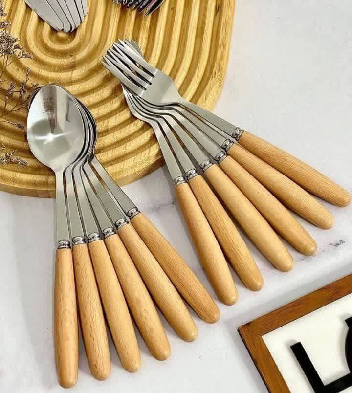 قاشق و چنگال دسته چوبی